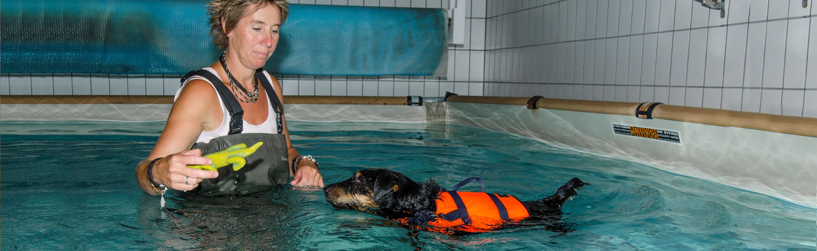 Die Schwimmtherapie - auch "Hydrotherapie" oder "Aquatraining" genannt - ist eine äusserst effektive Methode für einen gleichmässigen, gelenkschonenden Muskelaufbau. Sie kräftigt nicht nur die Muskulatur, sondern auch das Herz-Kreislaufsystem. Schwerelosigkeit und Wasserwiderstand ermöglichen ein abwechslungsreiches und wirkungsvolles Bewegungstraining für Hunde jeder Grösse.